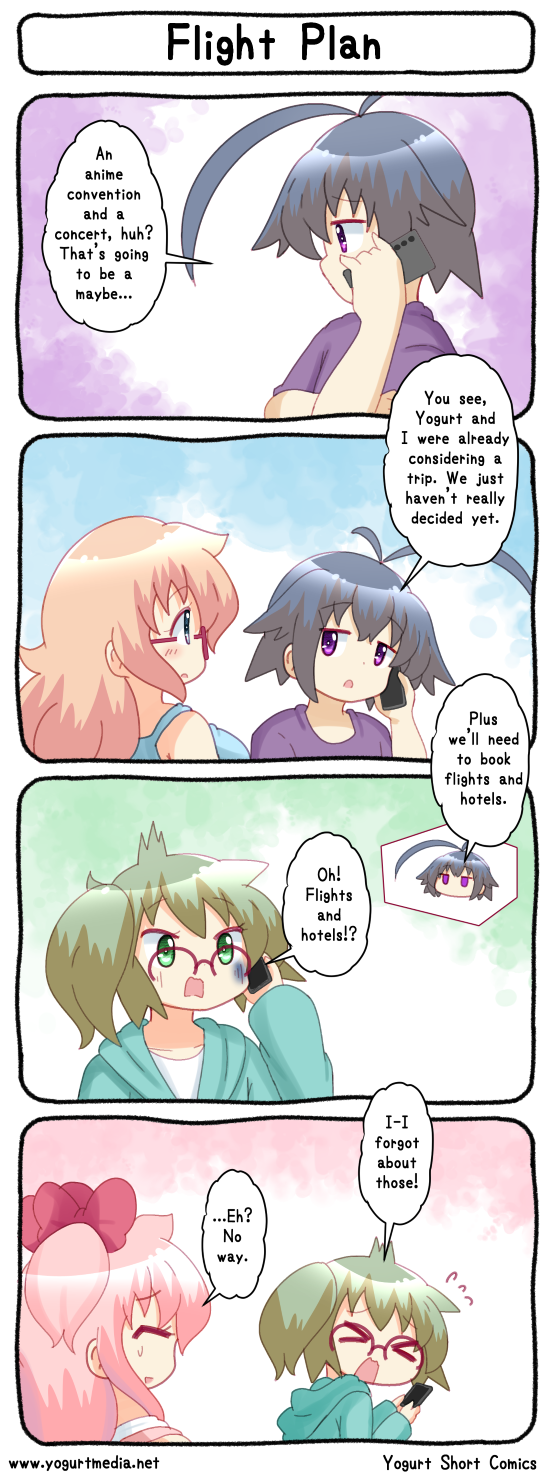 In this comic, Berry clarifies with Risa about the prospect of them going to Vancouver to visit anime convention and concert. They’ll still need to think about it, because they’ll have to plan a flight there, including a place to stay during the visit and such. Not only that, but Berry was already considering a trip together with Yogurt. They just haven’t decided where it will be yet…